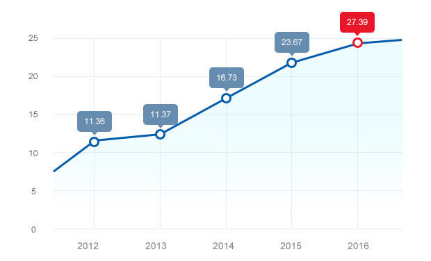 CAGR of Revenues Reaches 17.64% from 2012 to 2016