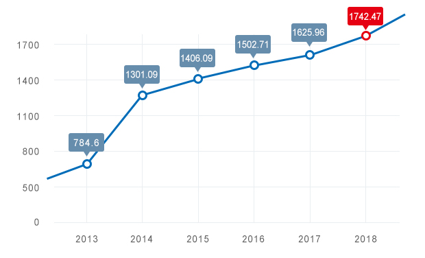 2013年至2018年收入年均復合增長率17.30%