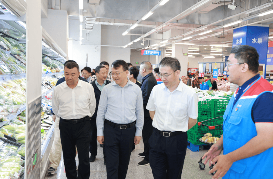 省商務廳總經濟師朱軍、副廳長吾布力喀斯木·買吐送到明康匯倉儲超市調研