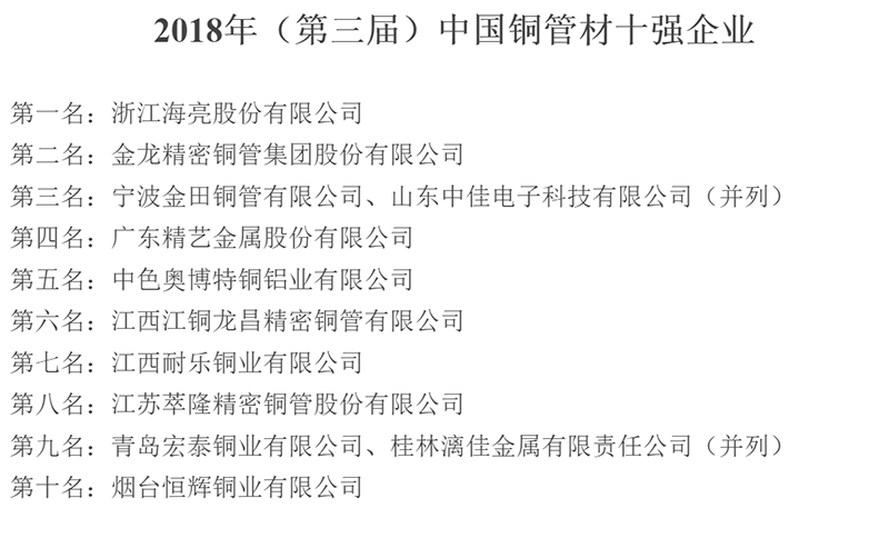 2018年中國(guó)銅管材十強(qiáng)揭曉,海亮股份名列榜首